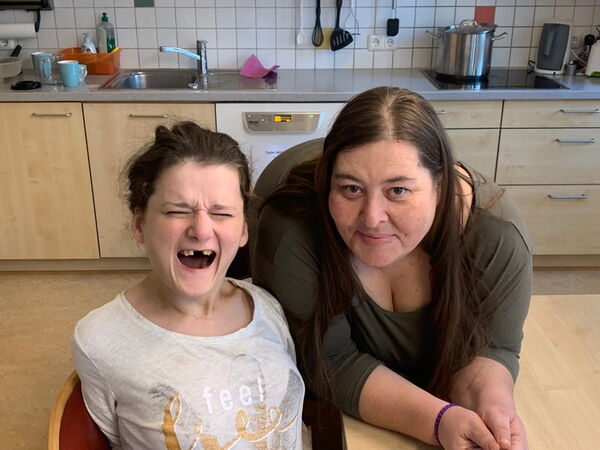 „Durch ihre starke Spastik hat sich Sabina im Wohnverbund bislang immer mit dem Rollstuhl fortbewegt. Unser gemeinsames Ziel war es, dass sie die Wege mit dem Rollator zurücklegt und beim gemeinsamen Kaffeetrinken am Küchentisch nicht mehr im Rollstuhl, sondern auf einem Sessel sitzt“, erklärt Belinda.