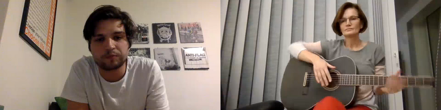Der Gitarrenunterricht findet in Kleingruppen per Videokonferenz statt und funktioniert überraschend gut. Zwar sind gemeinsames Spielen und Singen wegen der Latenz nur bei deaktiviertem Mikrofon der Studierenden möglich, aber man erkennt auch am Gesichtsausdruck, ob alle gut dabei sind oder ob noch Hilfestellungen benötigt werden.“
